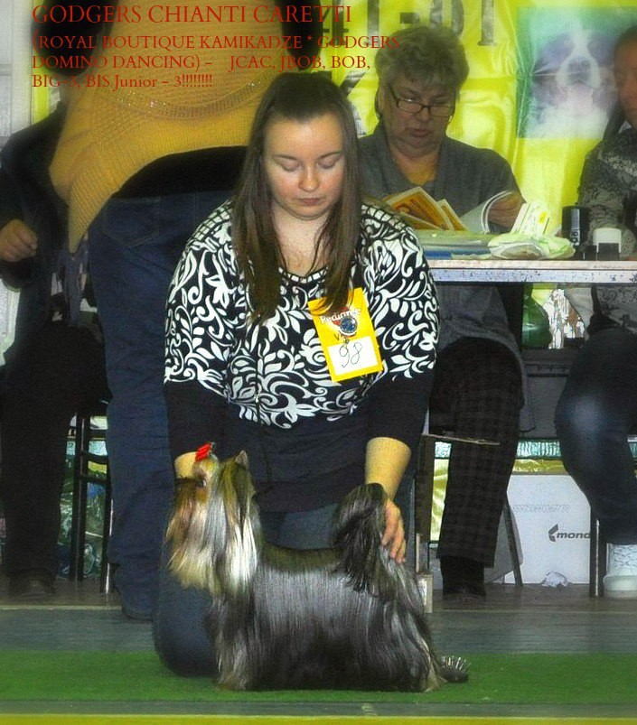 | 20 ноября, Кострома, эксперт Чистякова Л.Г. GODGERS CHIANTI CARETTI (ROYAL BOUTIQUE KAMIKADZE * GODGERS DOMINO DANCING) - JCAC, JBOB, BOB, BIG-3, BIS Junior - 3!!!!!!!! Грумер, хендлер и владелица Берсенева Юлия 19.11.2016 Национальная выставка "Йорк-шоу". Эксперт Sergio Pierluigi (Италия) Класс Юниоров GODGERS CHIANTI CARETTI (ROYAL BOUTIQUE KAMIKADZE * GODGERS DOMINO DANCING) - ОТЛИЧНО заводчик Сенечкина Ю.А., вл. Берсенева Ю.Е. грумер, хендлер - Яна Тимошкина Юлечка, Яна, девочки спасибо большое, что показывается сыночка!!!